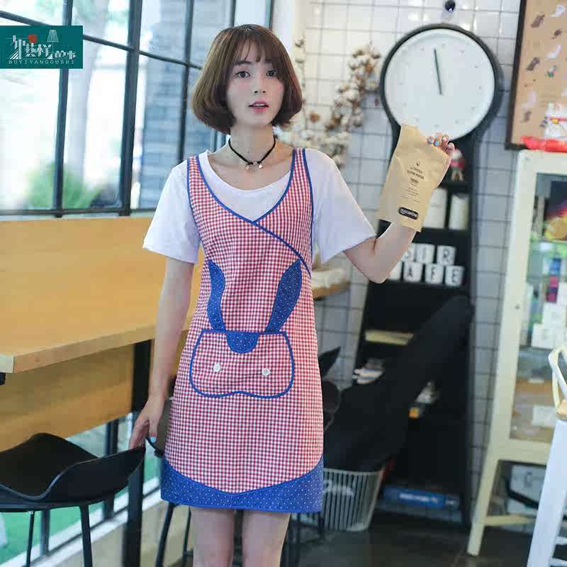 红色可爱兔子韩式围裙烘焙咖啡厅居家工作服防油设计师围裙女热门设计联盟服务商