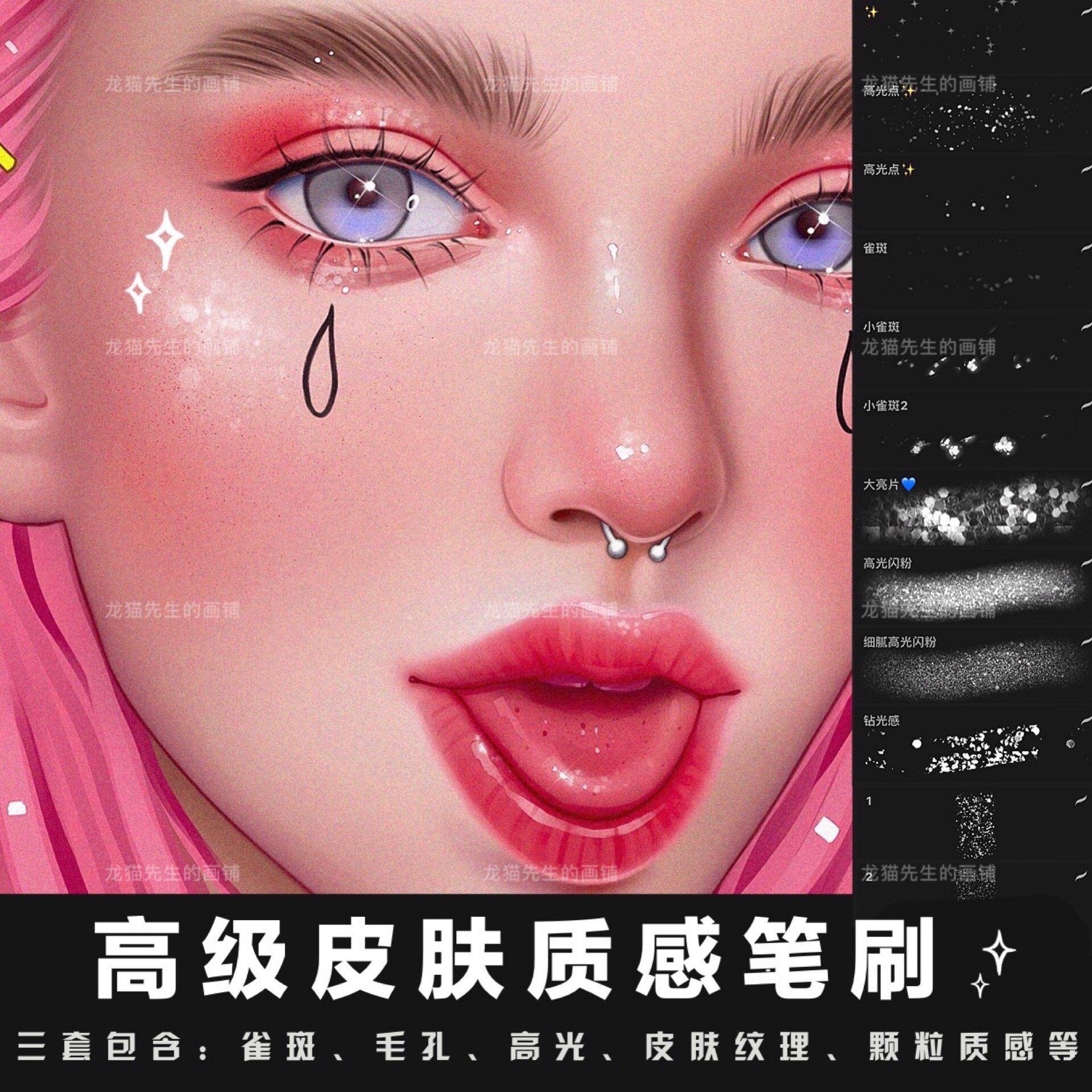 procreate三套超好用人物皮肤质感笔刷雀斑毛孔欧美妆感插画素材热门设计联盟服务商